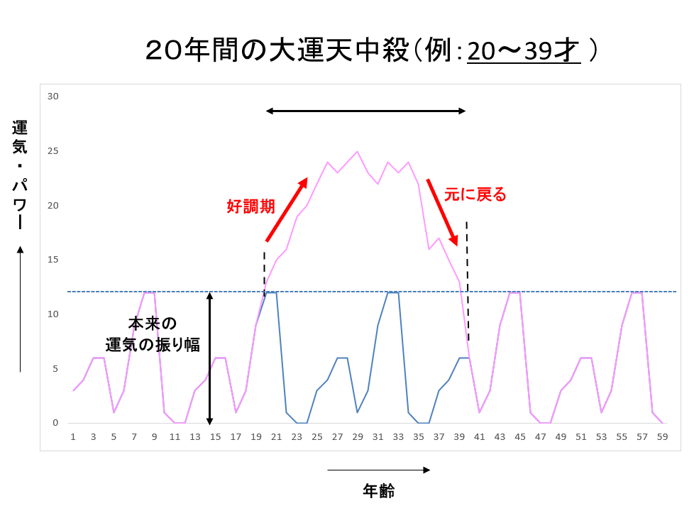 そんな、どこまでも昇っていく期間であり、5年かけて上昇し、最後の5年間で元に戻ることが、一般的な運気の形とされています。