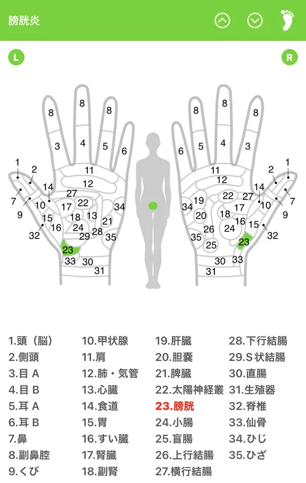 ※ 画像:スマホアプリ「手足のツボ」より