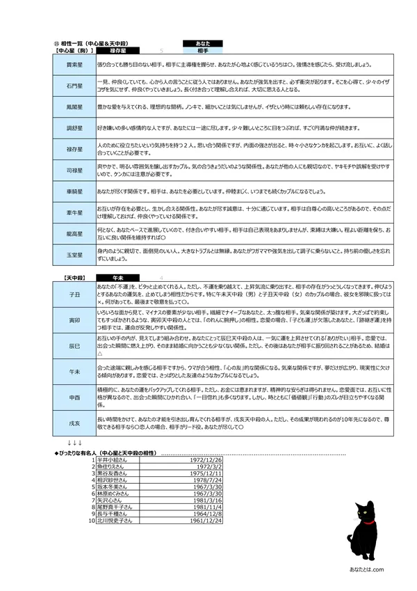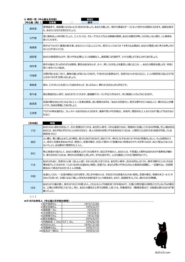 - D 相性診断 → 「中心星」と「天中殺」から相性が分かります ※相性が良過ぎると、何もかも分かり合える反面、「何でも見透かされてしまう」 息の抜けない関係にもなりかねません…