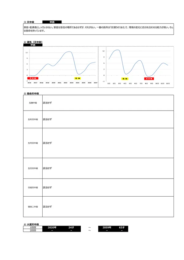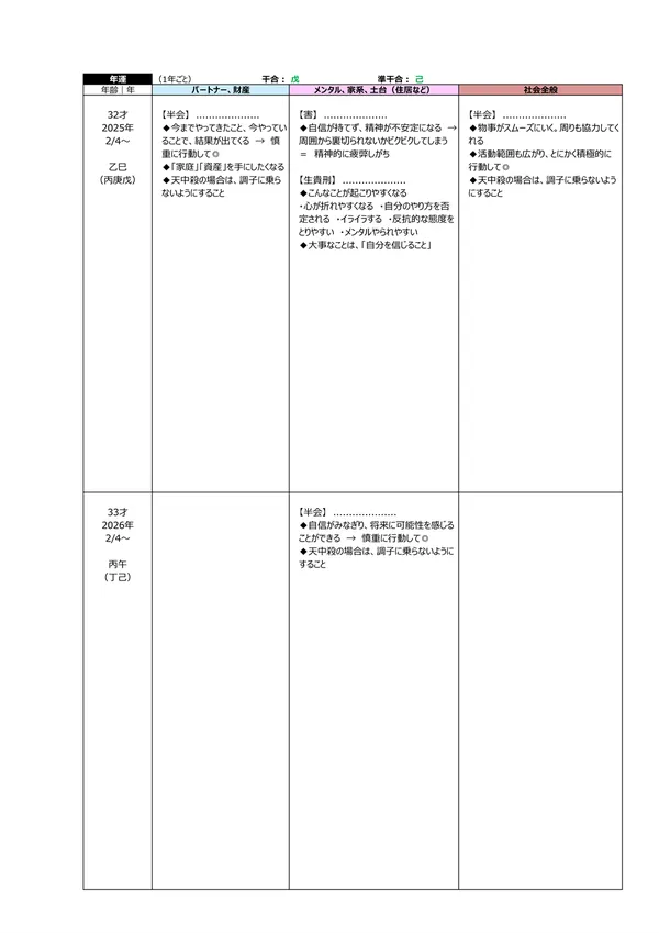 - B 生まれ持ったリスク → 「先祖から悪影響を受けてしまう」「他人に理解されない」「霊感が強い」など、宿命として背負ったリスク を知ることができます